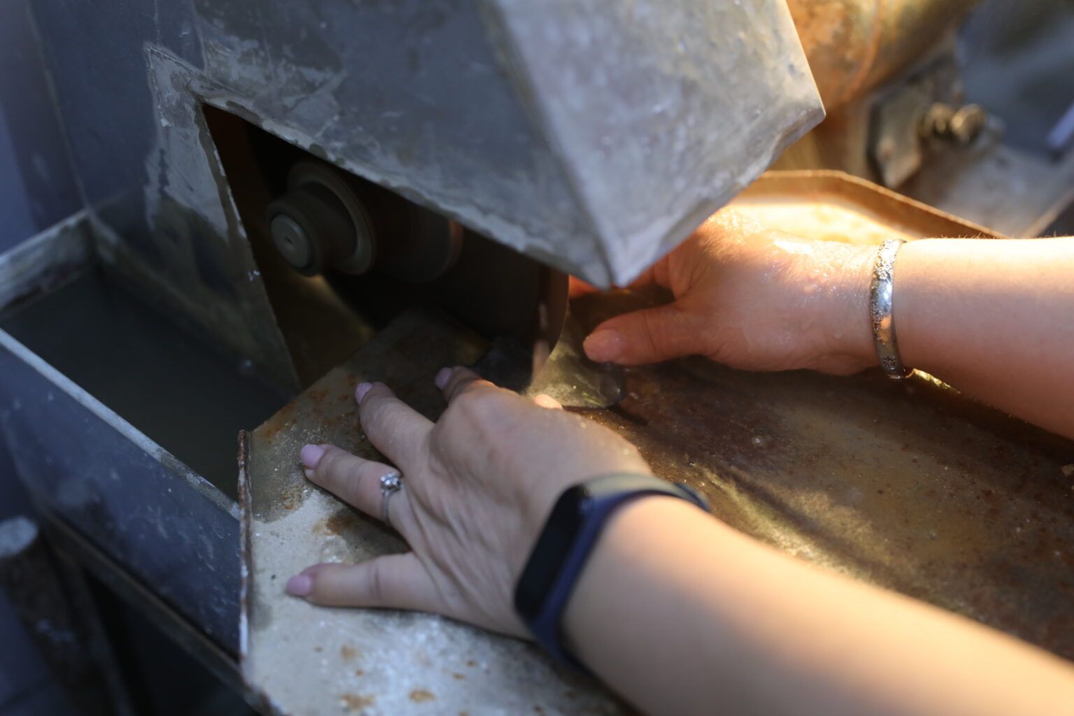 砂輪紙機操作:使用專業設備進行粗磨和細磨。