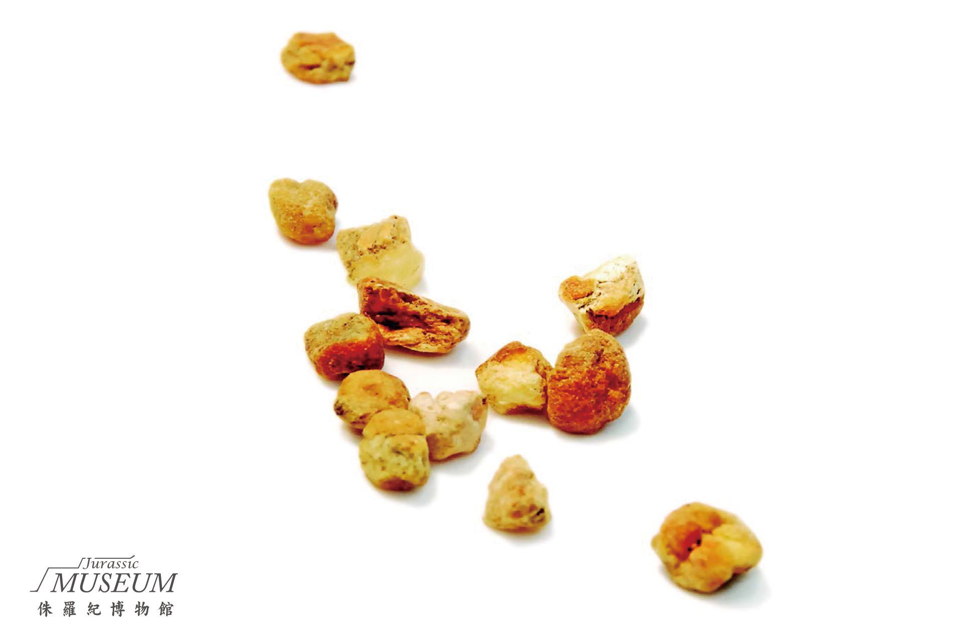 樹脂經過三千五百萬年的石化後質地輕盈,內含空氣、水、或有昆蟲,如同時空膠囊紀錄地球從前的種種。