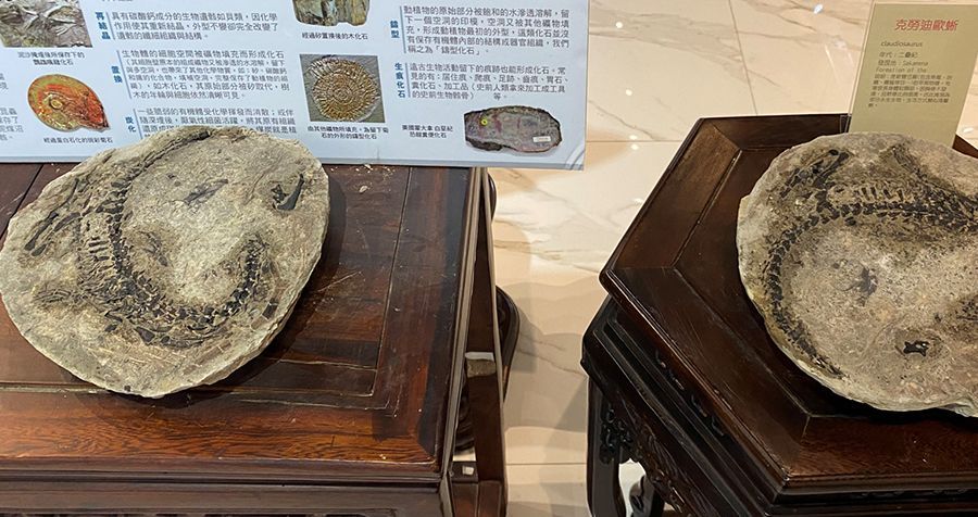 此外,本館收藏的化石亦極具巧思,定睛一看,不難發現左右兩個化石成對稱貌,因為師傅從化石中央將此對切為均等的兩半,所以才會如此對稱的呈現在訪客面前。